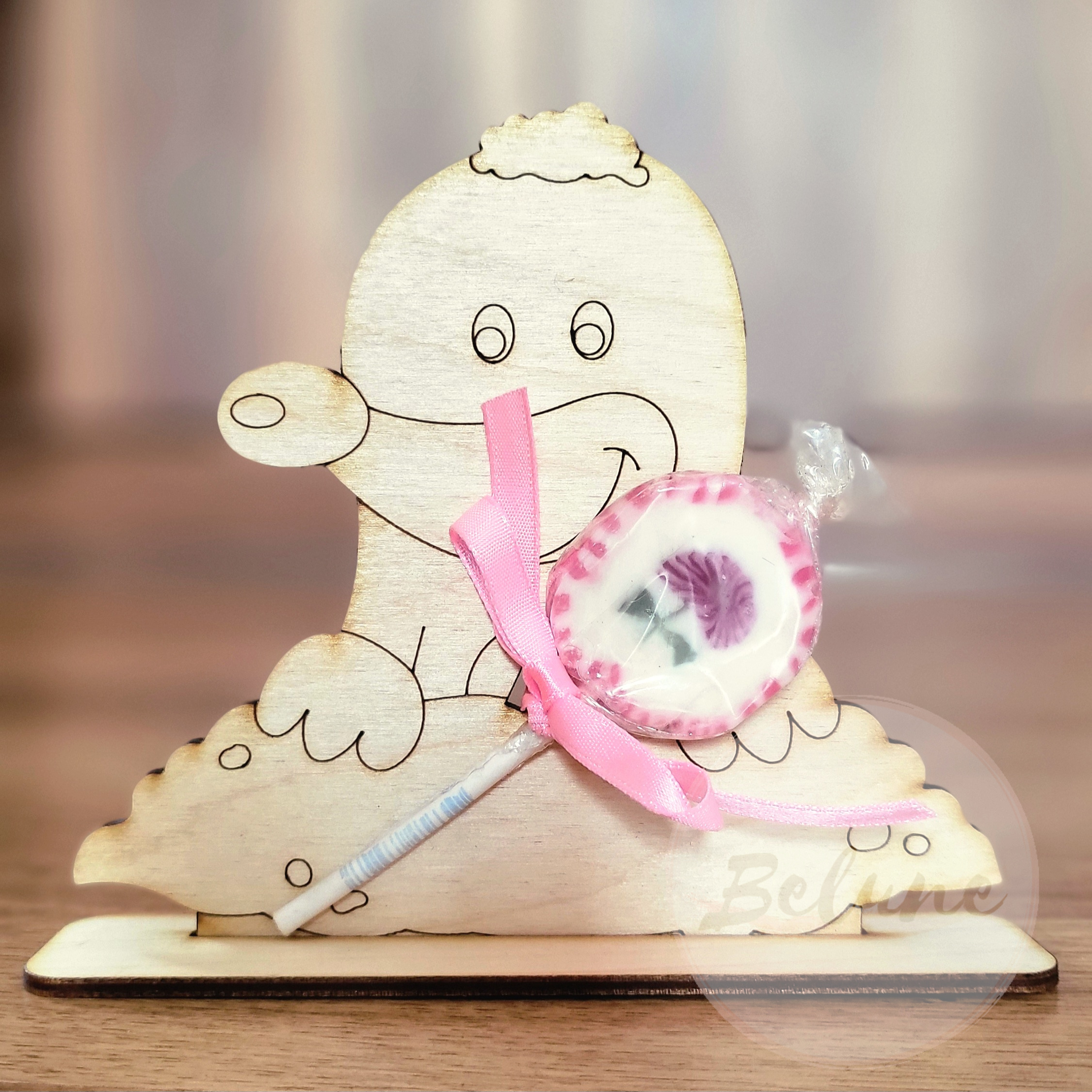 Dřevěný krtek na lízátko nebo jinou drobnost pro kamarády ve školce nebo kohokoliv jiného.