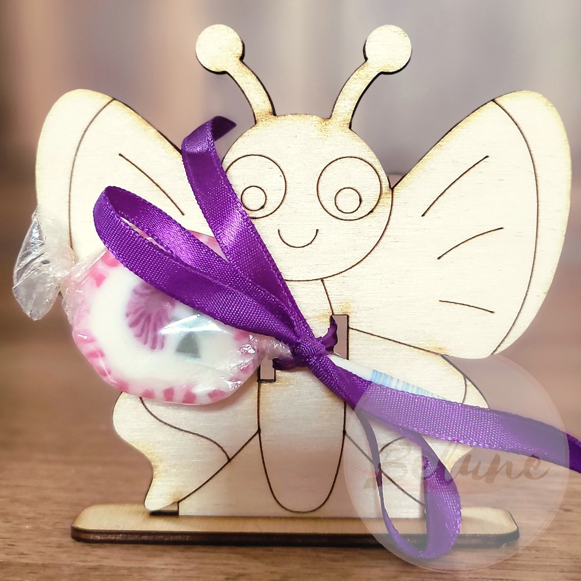 Dřevěný motýlek na lízátko nebo jinou drobnost pro kamarády ve školce nebo kohokoliv jiného.